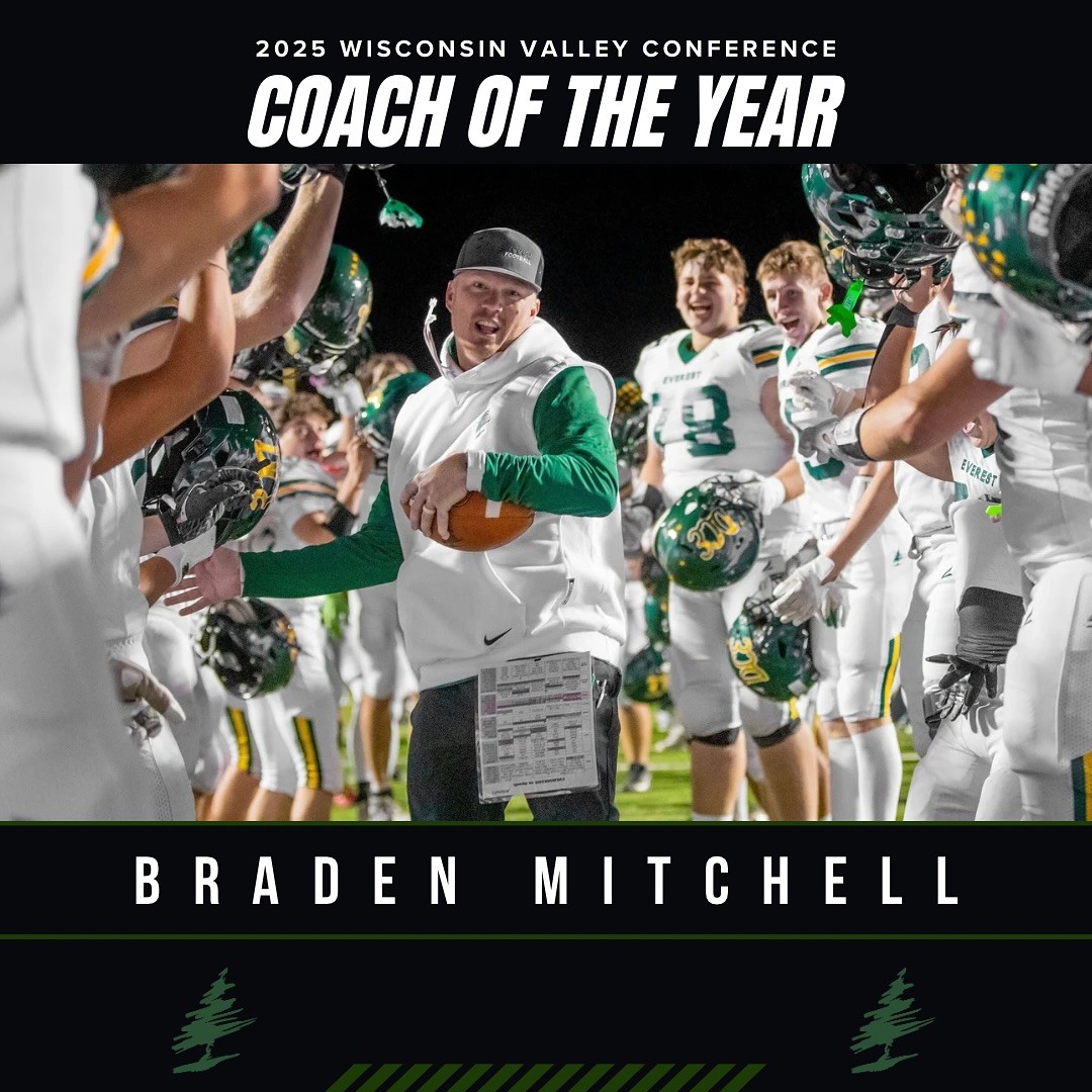 Braden Mitchell was picked as Coach of the Year after leading the Evergreens to the conference title with a 6-1 record (6-4 overall), and a WIAA playoff berth.
