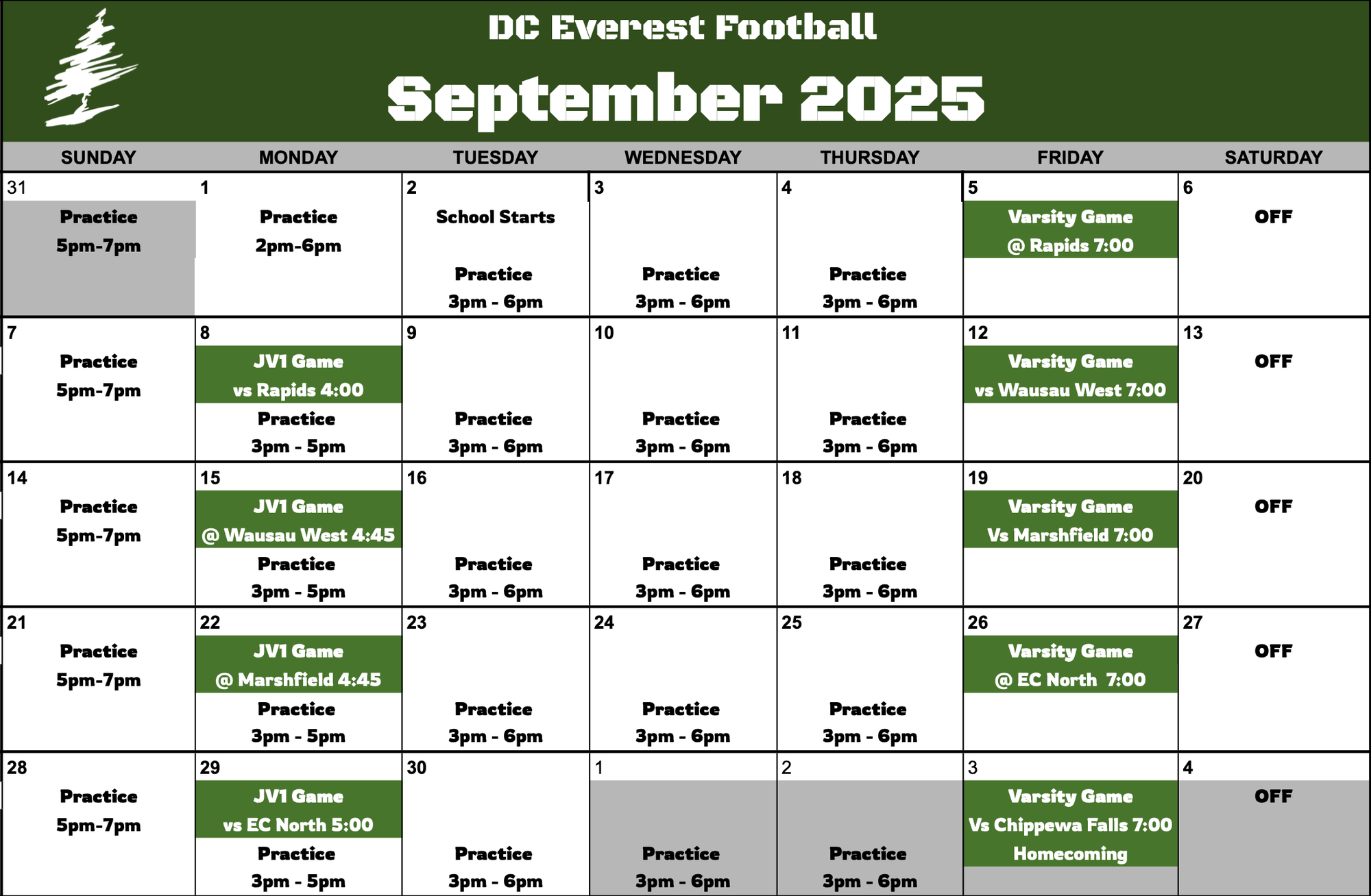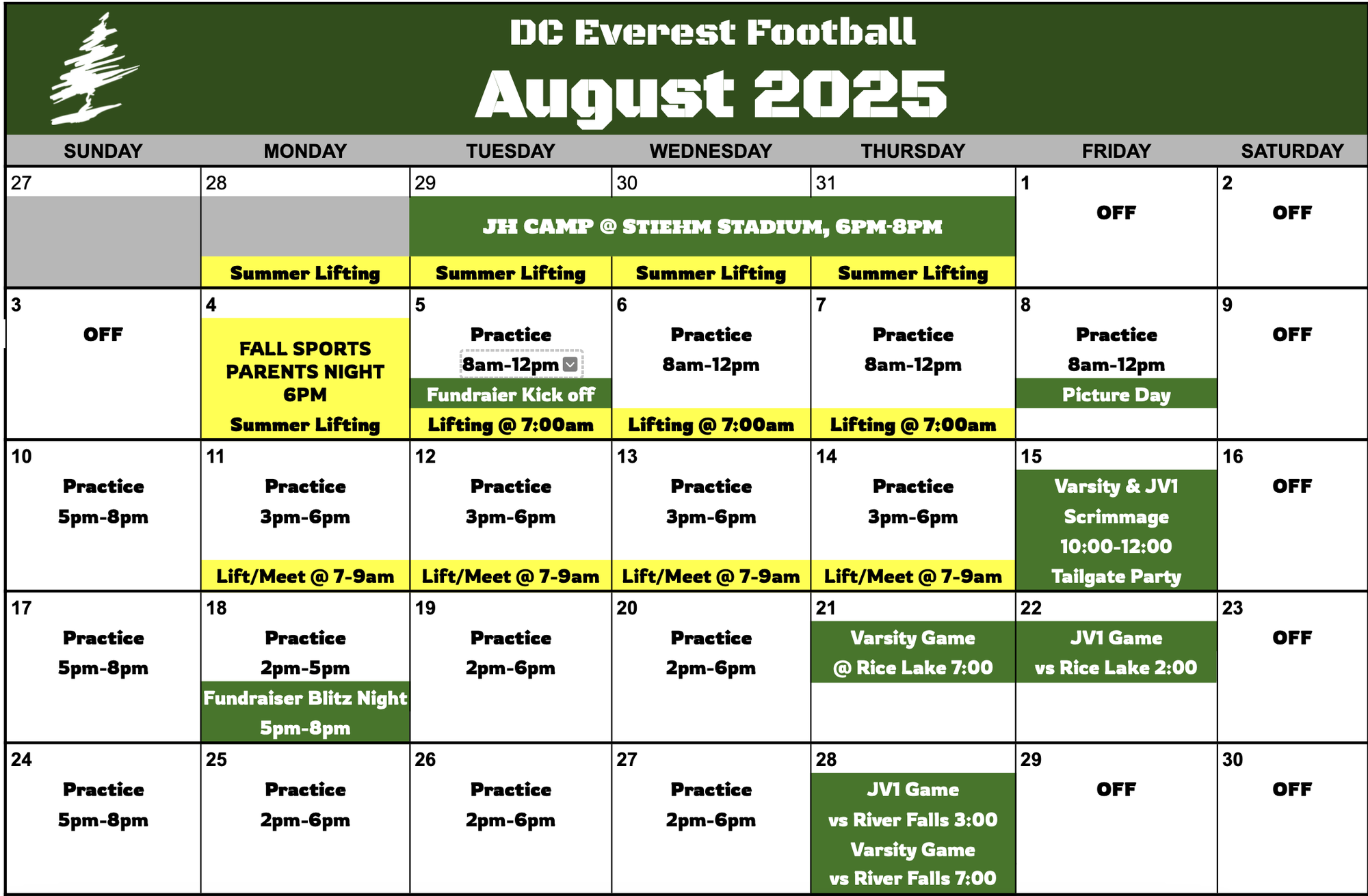 Player Calendar JUNE-JULY-AUGUST